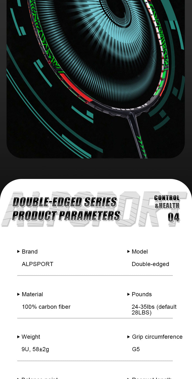 ALP SPORT 1pc SR - ALP SR Double-Edged 100% Full Carbon Fiber Badminton Racket 9U G5 24-35lbs