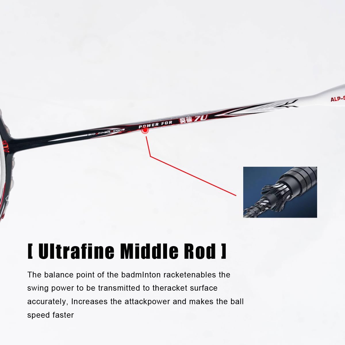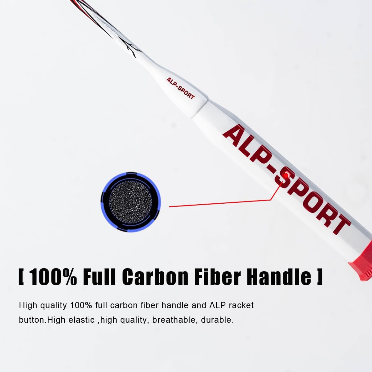 - 【Original Design】: ALPSPORT 100% original design badminton racket with 100% full carbon fiber handle, 7U about 65g super lightweight strong offensive design, high-end texture matching for indoor outdoor backyard playing