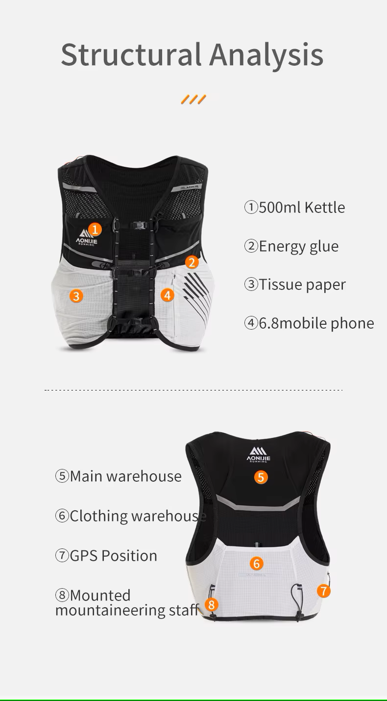 It is lightweight and portable, with a comfortable load-bearing system that fits the human body. Its 5L capacity has a reasonable compartment layout. It uses durable and water-repellent fabric. The practical external hanging design and reflective elements ensure safety. It also has good breathability, providing off-road enthusiasts with a convenient, comfortable and practical carrying experience.