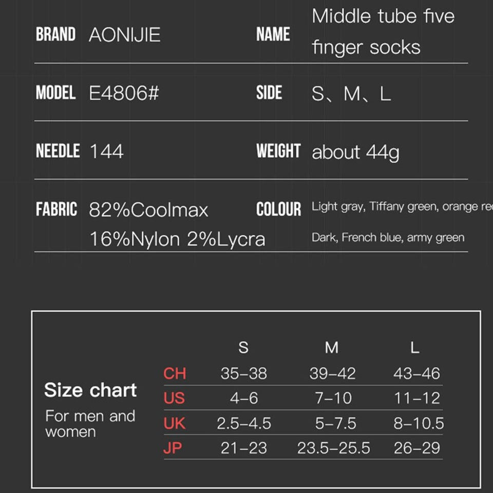 Aonijie Cool Max TOE SOCKS - DARK GREY MEDIUM