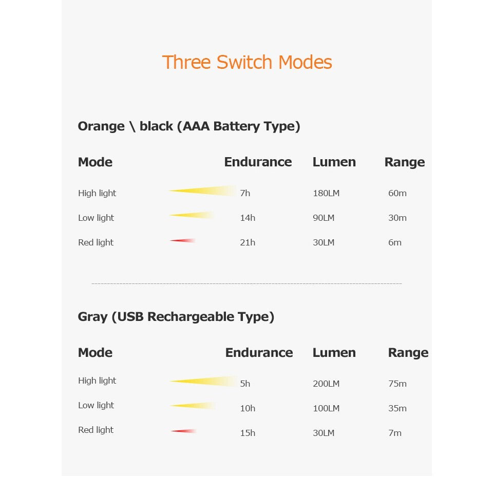 ULTRA BRIGHT-- Class-leading illumination with our 180 lumens Cree LED, providing three brightness. Intense white and red lights encompassed in a 60° rotating enclosure ensures clear vision in the dark.