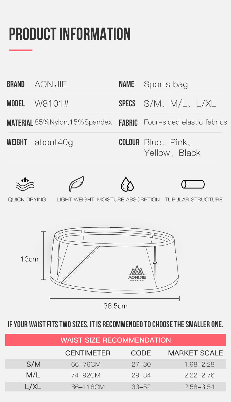 AONIJIE Ultralight Quick-drying Waist Belt Bag - BLACK