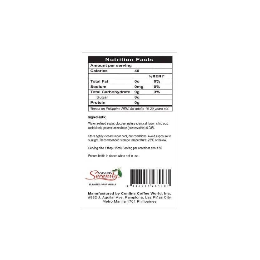 Serenity Vanilla Syrup 1 Liter delivers a rich and authentic vanilla flavor, perfect for enhancing coffee, desserts, and beverages. Crafted to blend smoothly, this syrup offers consistent sweetness and aroma, making it ideal for both professional use and home baristas seeking quality and reliability in every pour. Its convenient 1-liter size ensures long-lasting supply for high-demand environments.