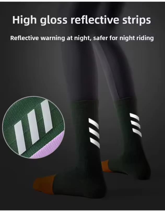 Reflective Breathable SPORTS SOCKS for Cycling Running Non-Slip Mid-Tube Socks