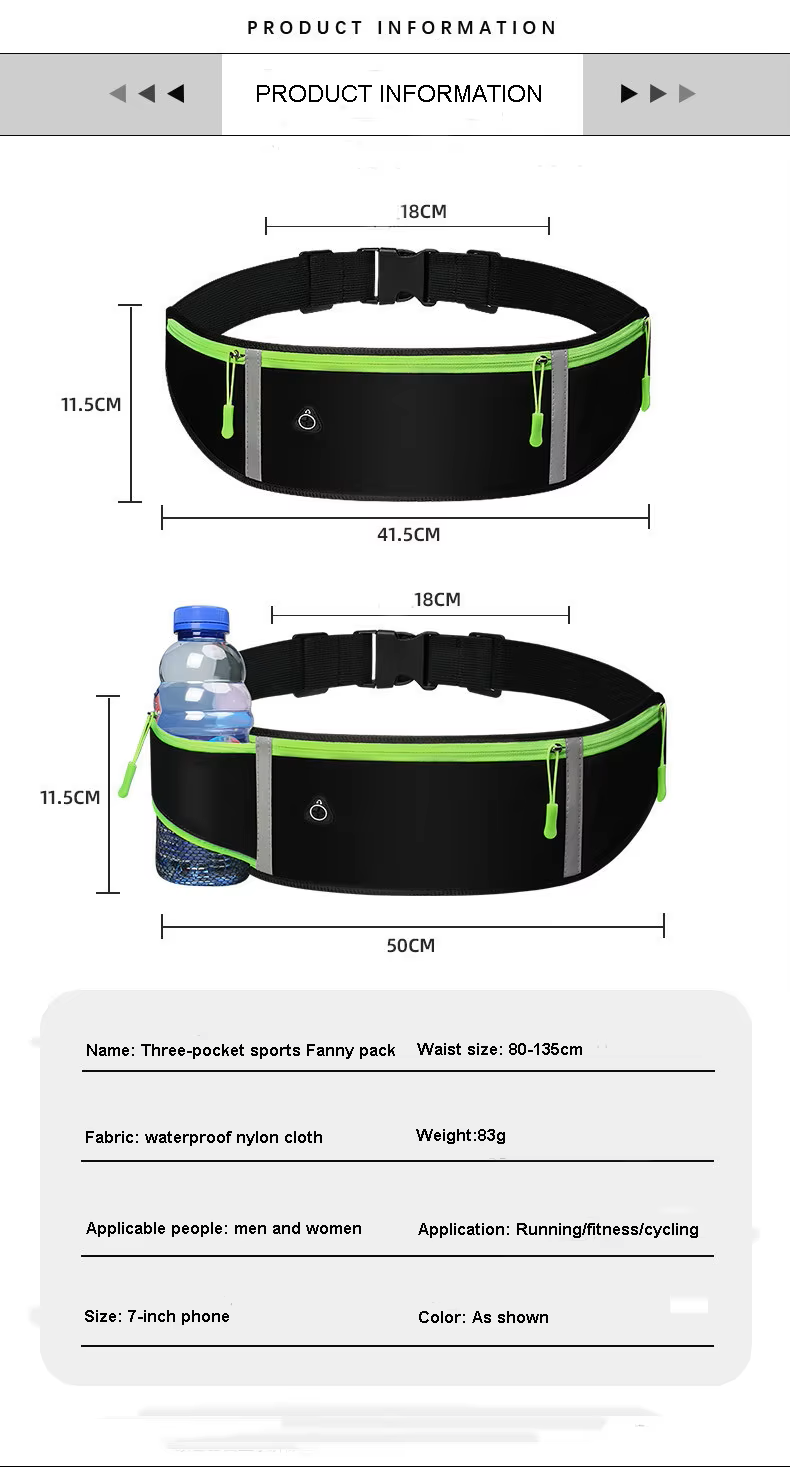 Designed for serious runners and athletes, the Reflective Sports Running Waist Bag offers secure, hands-free storage that stays visible in low-light conditions. Crafted with durable, lightweight materials, it features reflective accents to enhance safety during early morning or nighttime workouts. The adjustable belt ensures a comfortable, snug fit, while multiple compartments provide organized space for essentials like keys, phones, and energy gels. Stay confident and focused on your performance with this expertly engineered waist bag made to keep pace with your active lifestyle.