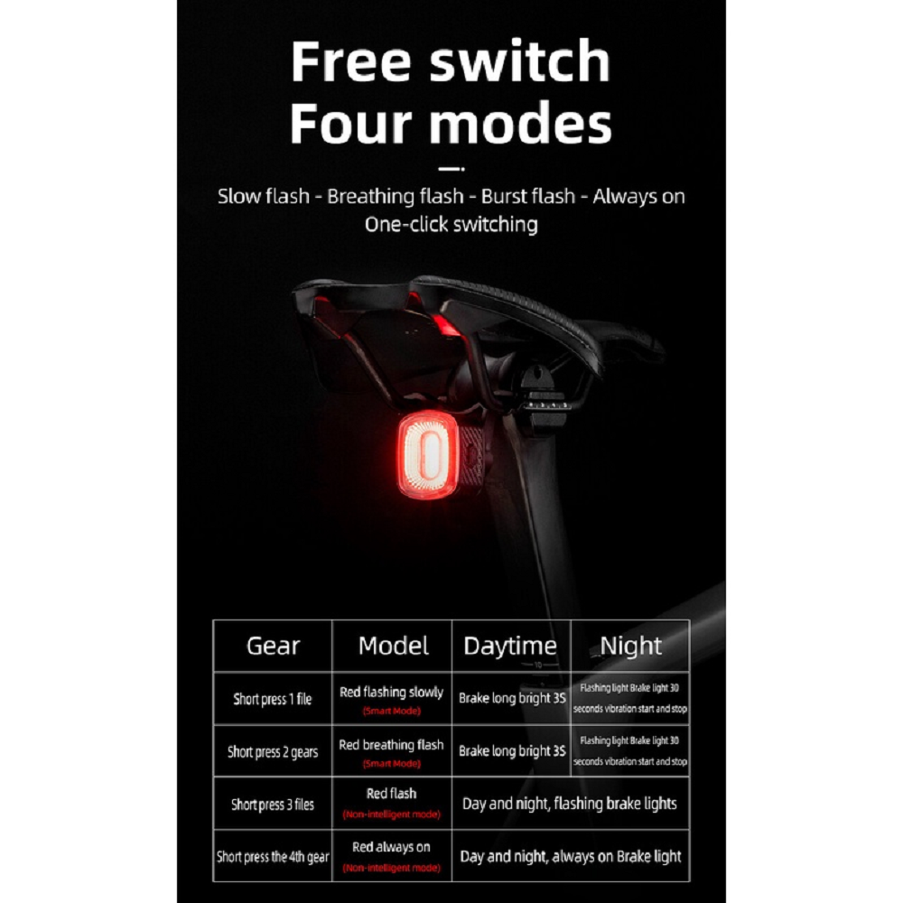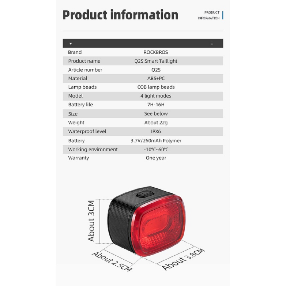 Rockbros BICYCLE LIGHT Q2S Smart IPX6 Waterproof TAIL LIGHT LED USB Rechargeable -- RED