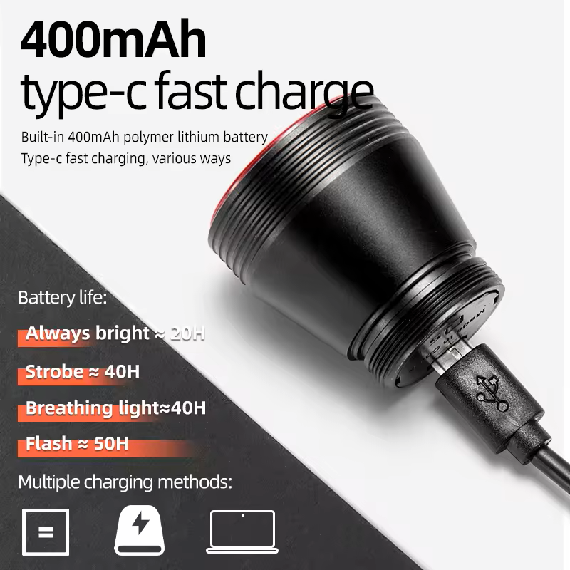 Fitted with a sensor, the ROCKBROS Bicycle Smart rear light detects when you brake. The light brightens on braking, much like a car brake light, so other road users know your intentions.Different Light Modes