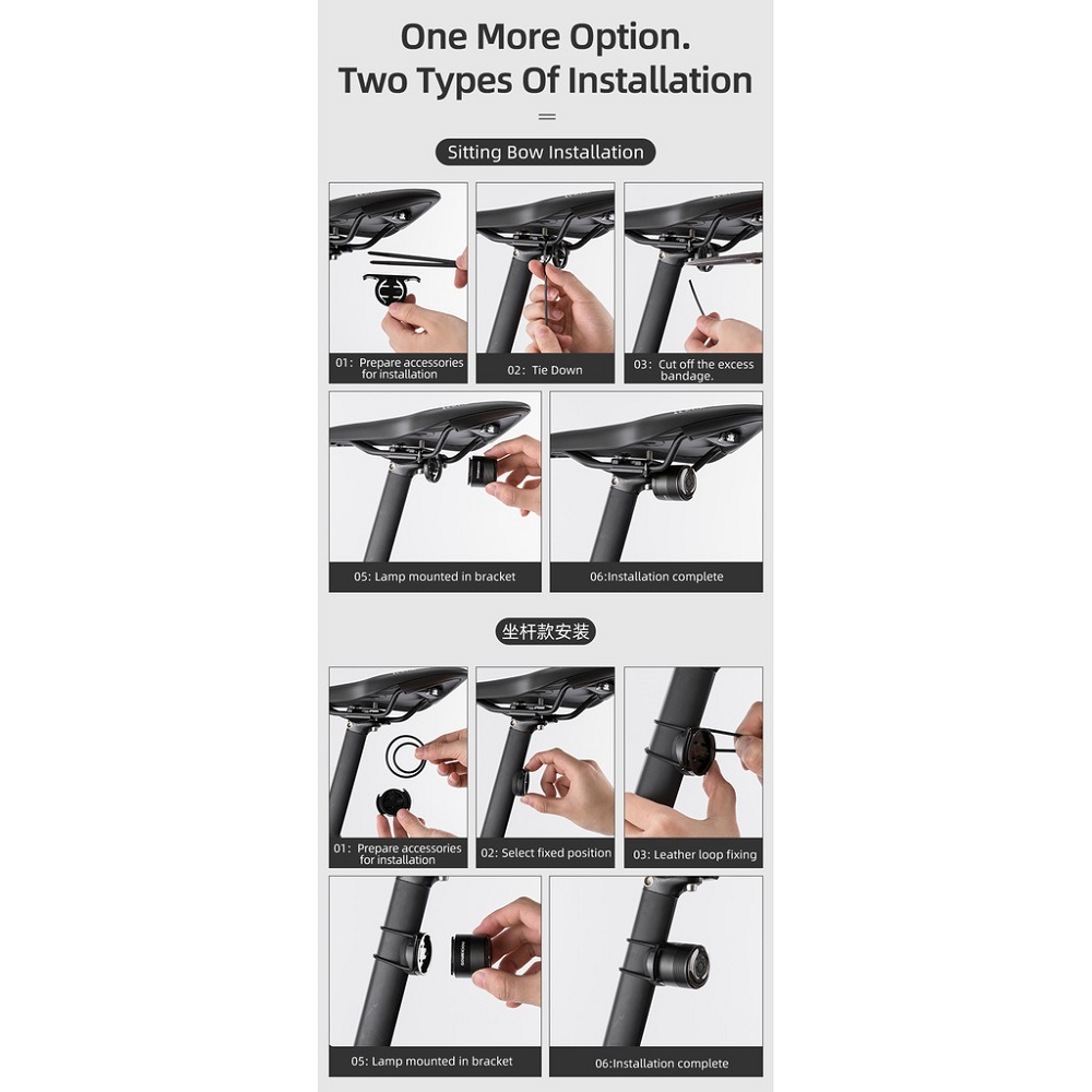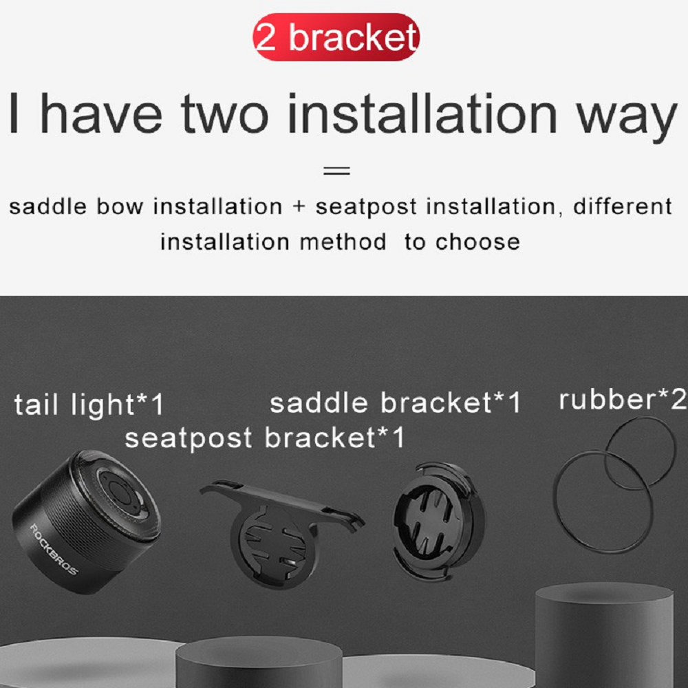 Rockbros BICYCLE TAIL LIGHT 600 Lumens Rechargeable - BLACK
