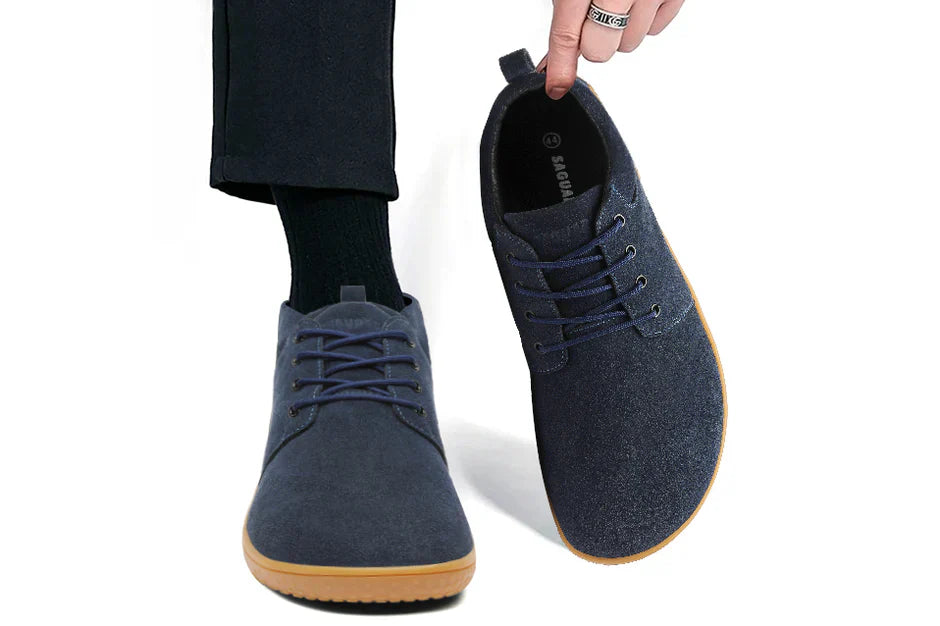 Designed for business casual settings, these shoes feature refined suede for style and a flexible, zero-drop structure for all-day comfort and natural movement in the office.