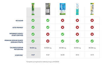 SaltStick® DrinkMix is a delicious, no-sugar ready-to-mix powder that provides a similar ratio of electrolytes to what your body loses through sweat. Our scientific formula relies on cleanly sourced, buffered ingredients to help minimize heat stress and muscle cramping due to dehydration, without causing stomach discomfort.
