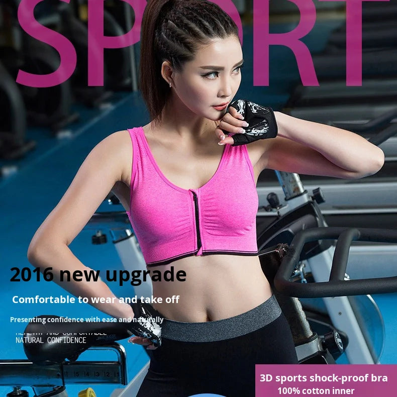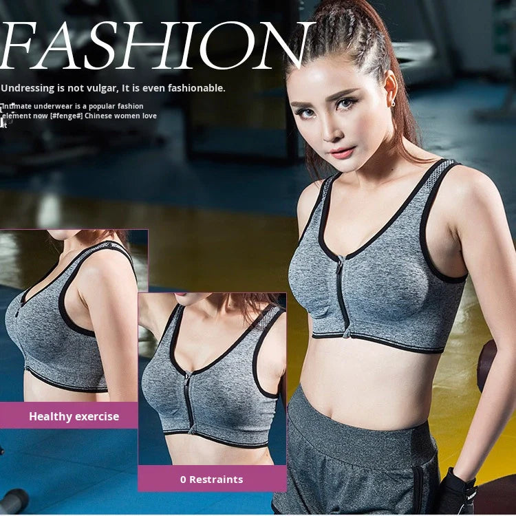 Women's SPORTS BRA Front Zipper Shock-proof Wire-free Breathable Material